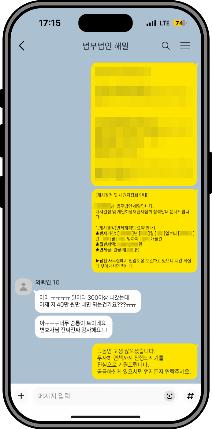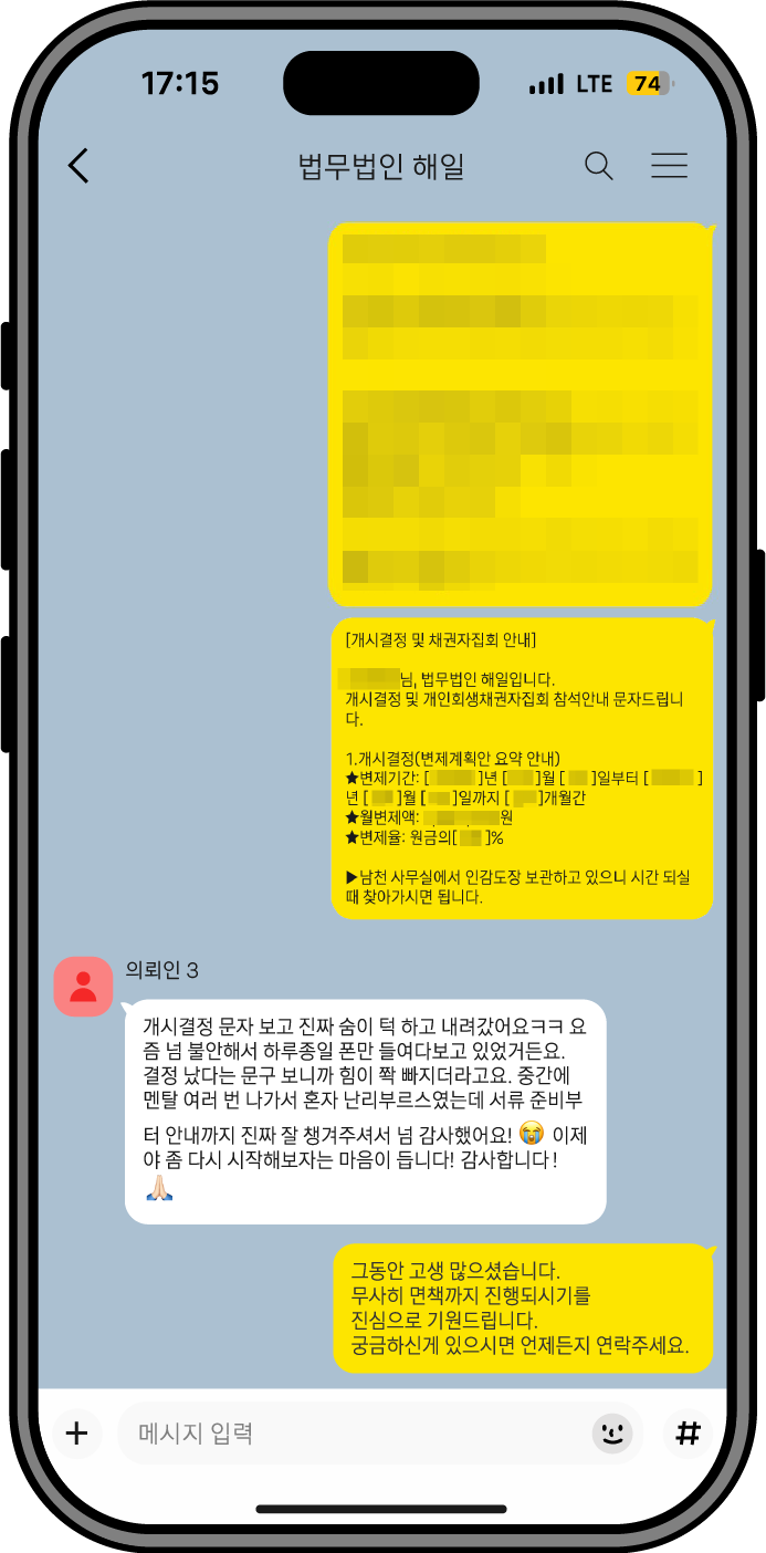 확정되면 채무 감면과 신용 회복이 이루어집니다.