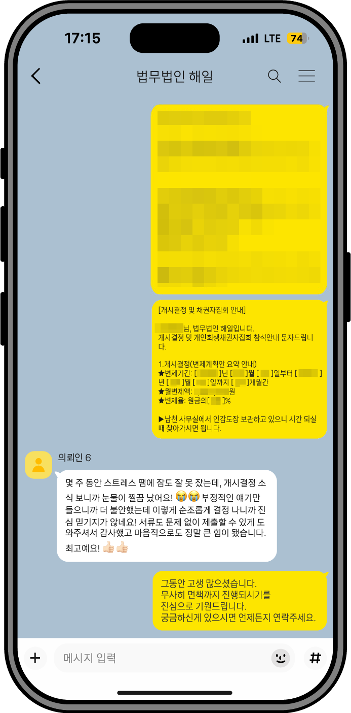 압류 예방 등 법적 보호가 즉시 적용됩니다.