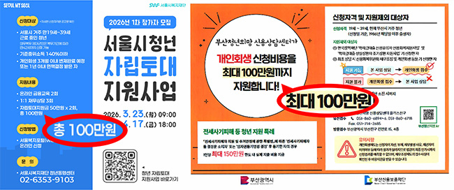 100만 원까지 지원해 주는 제도도 있죠.